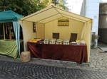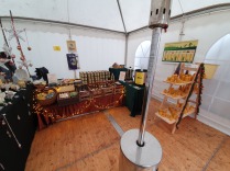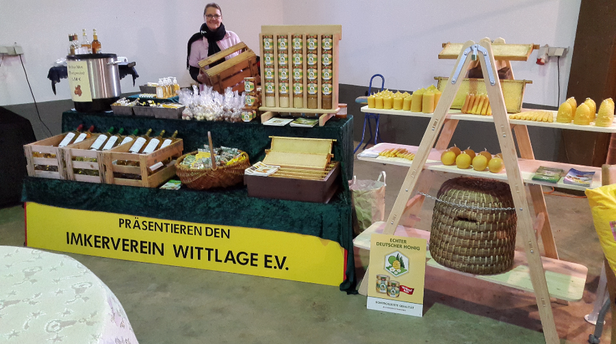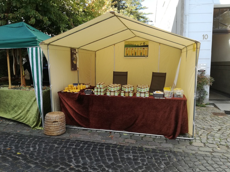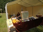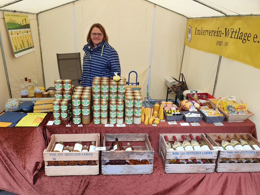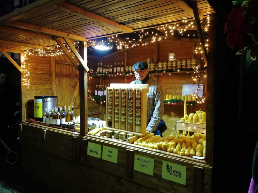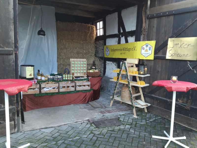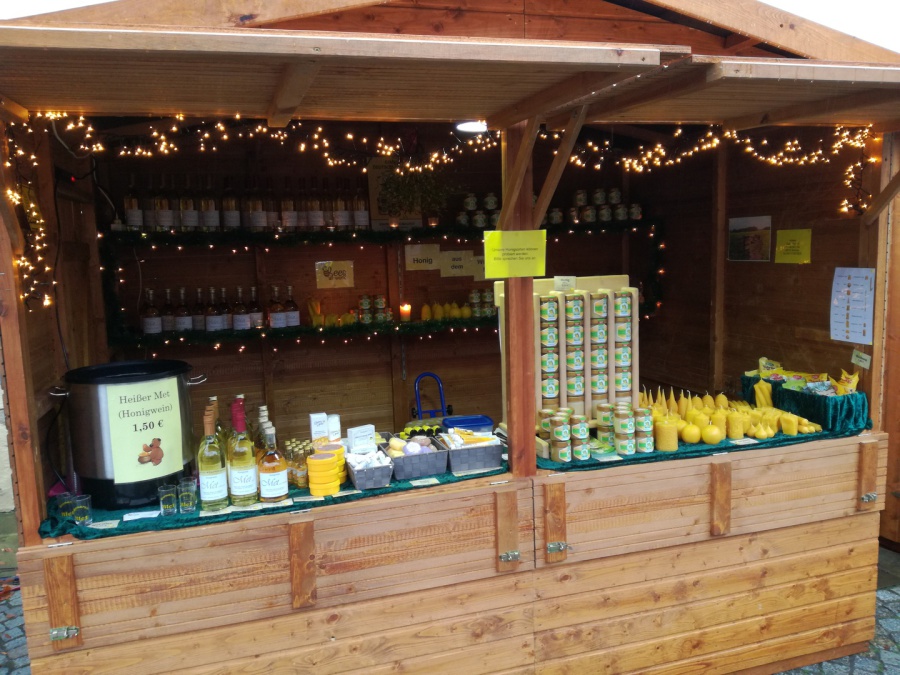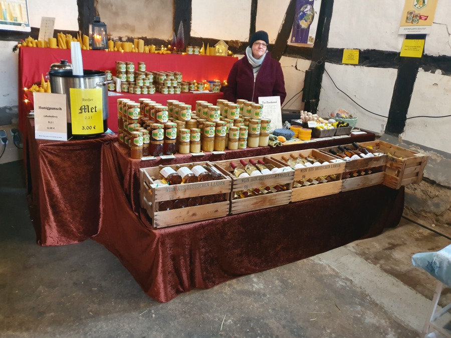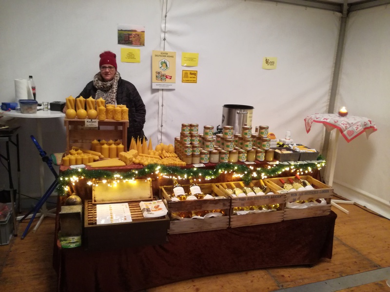 Wir hatten gut zu tun, Honig, Met, Kerzen, Pralinen und andere Kleinigkeiten wechselten den Besitzer. Es war zeitweise ganz schön viel los am Stand, aber so soll es ja sein. An unserem Stehtisch wurde heißer Met verzehrt und viele Bekannte kamen um Hallo zu sagen.