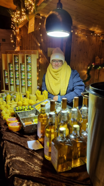 Der Markt war wie immer gut besucht und so wurde uns die Zeit auch nicht zu lang. Es wurde viel probiert, gefragt und gekauft. Die Stimmung in unserem kleinen Zelt war gut, sodass wir auch Spaß hatten wenn bei uns gerade mal nix los war, weil zum Beispiel der Nikolaus seine Geschenke verteilte.